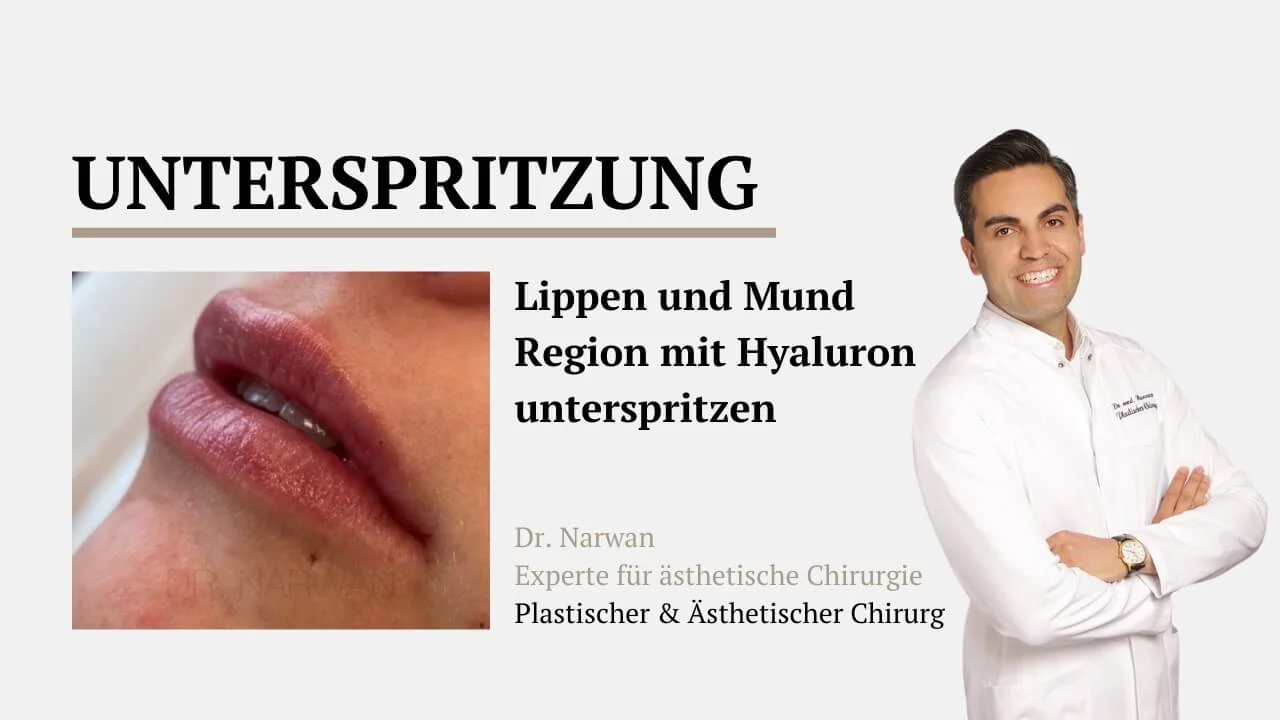 Die gesamte Mundregion können Dr. Narwan und sein Ärzteteam mit jeweils speziell dafür hergestellten Hyaluron-Präparaten sehr gut behandeln. Und zwar nicht nur durch das Unterspritzen der einzelnen kleinen und tieferen Falten. Wichtig ist zunächst das Beheben des Volumenverlustes, der dafür ursächlich ist. Er entsteht, weil die Spannkraft des Gewebes mit den Jahren nachlässt und schwerkraftbedingt absinkt, so dass Falten mit der Zeit immer tiefer erscheinen. Im Video macht Dr. Narwan deutlich, wie seine minimalinvasiven Gesichtsbehandlungen rund um den Mund für sich sprechen – und für seine Expertise.